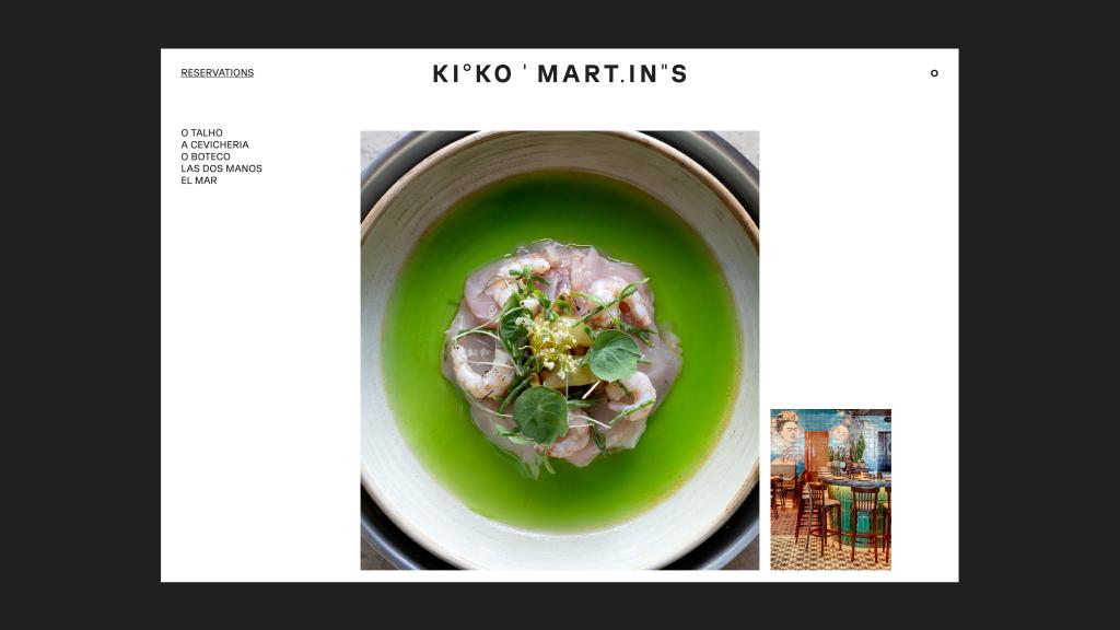 Minimalist yet full of meaning, KI°KO ' MARTI.N''S is far more than a name. It embodies the coordinates of an itinerary – an open invitation to explore Kiko’s world – and distils into a single visual language the spirit of exploration and cultural curiosity that defines his cuisine.